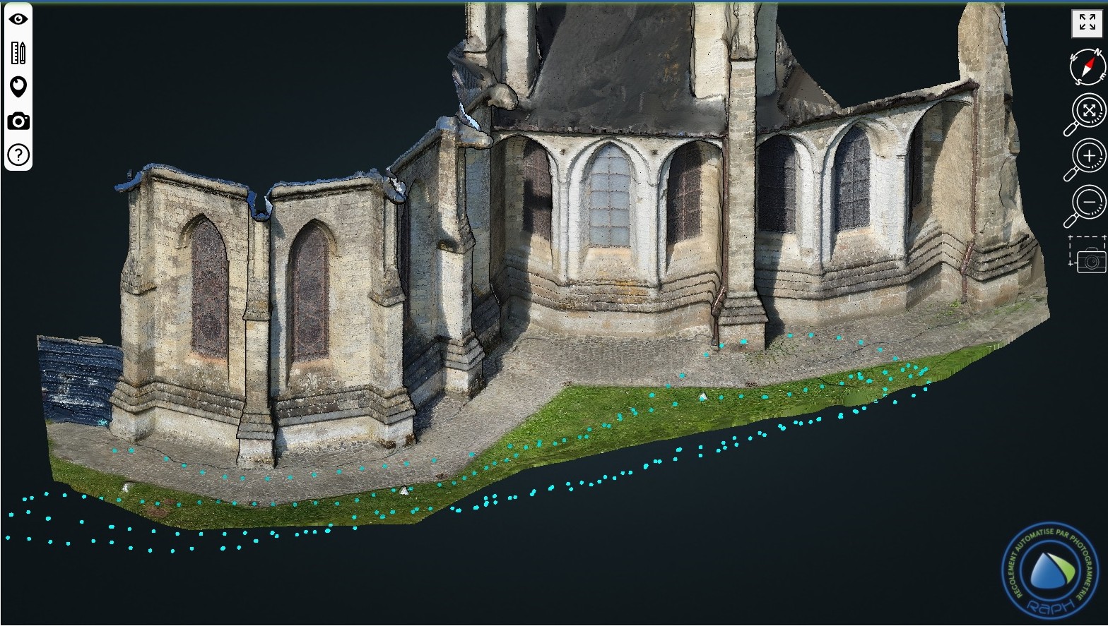 - Prises de vues photogrammétriques terrestres des intérieurs et des façades